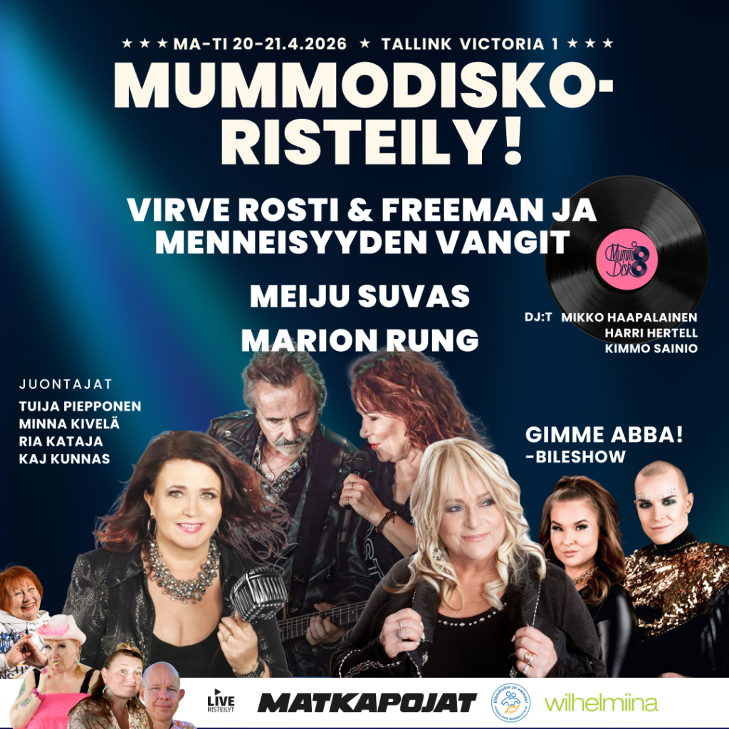 Supersuosittu ja jo käsitteeksi muodostunut Mummodisko lähtee nyt merille oman risteilyn merkeissä teemalla: “Kaikkien aikojen Mummodisko!”! Tallink Victoria 1 -laivalla seilataan Helsingistä Tallinnaan ja takaisin 22h ajan 20.-21.4.2026!