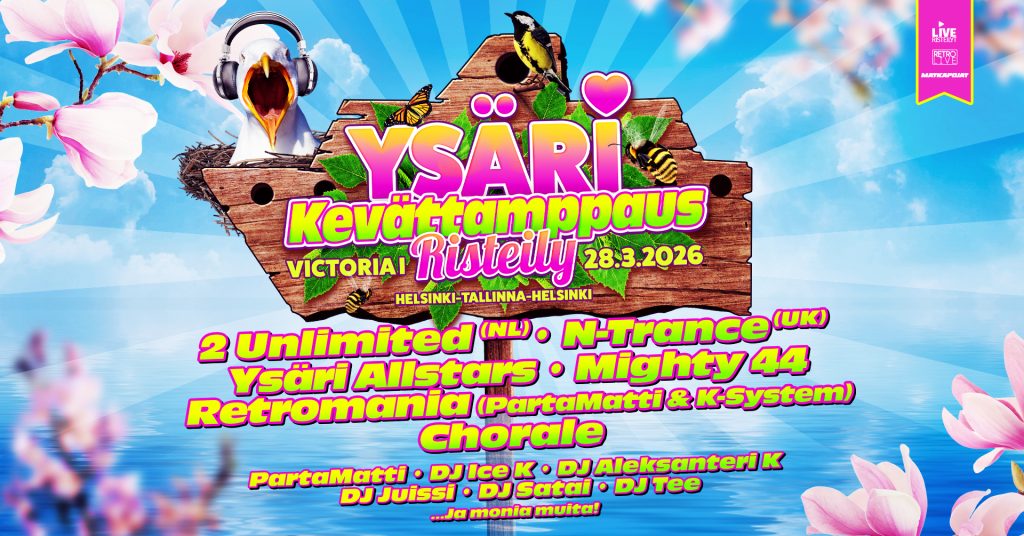 YSÄRI KEVÄTTAMPPAUS -RISTEILY SEILATAAN HELSINGISTÄ TALLINNAAN 28. – 29.3.2026! Huippusuositut Ysäri-risteilyt jatkuvat taas maaliskuun lopussa, kun Victoria I:n keula suuntaa kohti Tallinnaa! Tutustu kattaukseen, nappaa liput ja lähde mukaan tamppaamaan!